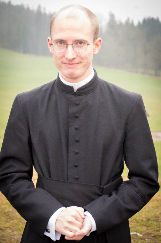 mein Name ist Francesco Joseph Serwe, am 4.5.1999 in Bergisch Gladbach bei Köln geboren, aufgewachsen aber in Hohen Neuendorf, im Norden Berlins. Ich bin der Älteste von insgesamt fünf Kindern. Meine Taufe fand noch in St. Pantaleon in Köln durch Pater Recktenwald im überlieferten Ritus statt. In den Sommerferien waren wir als Familie viele Jahre auf Familienfreizeiten der Bruderschaft, früher in Blankenheim in der Eifel, dann etliche Jahre auf der Bettmeralp mit Pater Martin Ramm, der früher auch einmal in Köln wirkte. Mit 7 Jahren durfte ich Messdiener werden. Zu dieser Zeit gingen wir schon in Berlin zum überlieferten Ritus und von da an habe ich fast jeden Sonntag bis zum Eintritt ins Seminar in der heiligen Messe mit großer Freude ministriert.